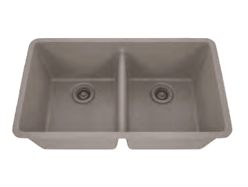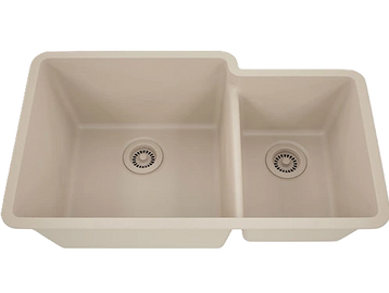 60/40 double-bowl quartz composite sink with matte finish. Heat, stain, and scratch resistant. Perfect for multitasking in busy kitchens.